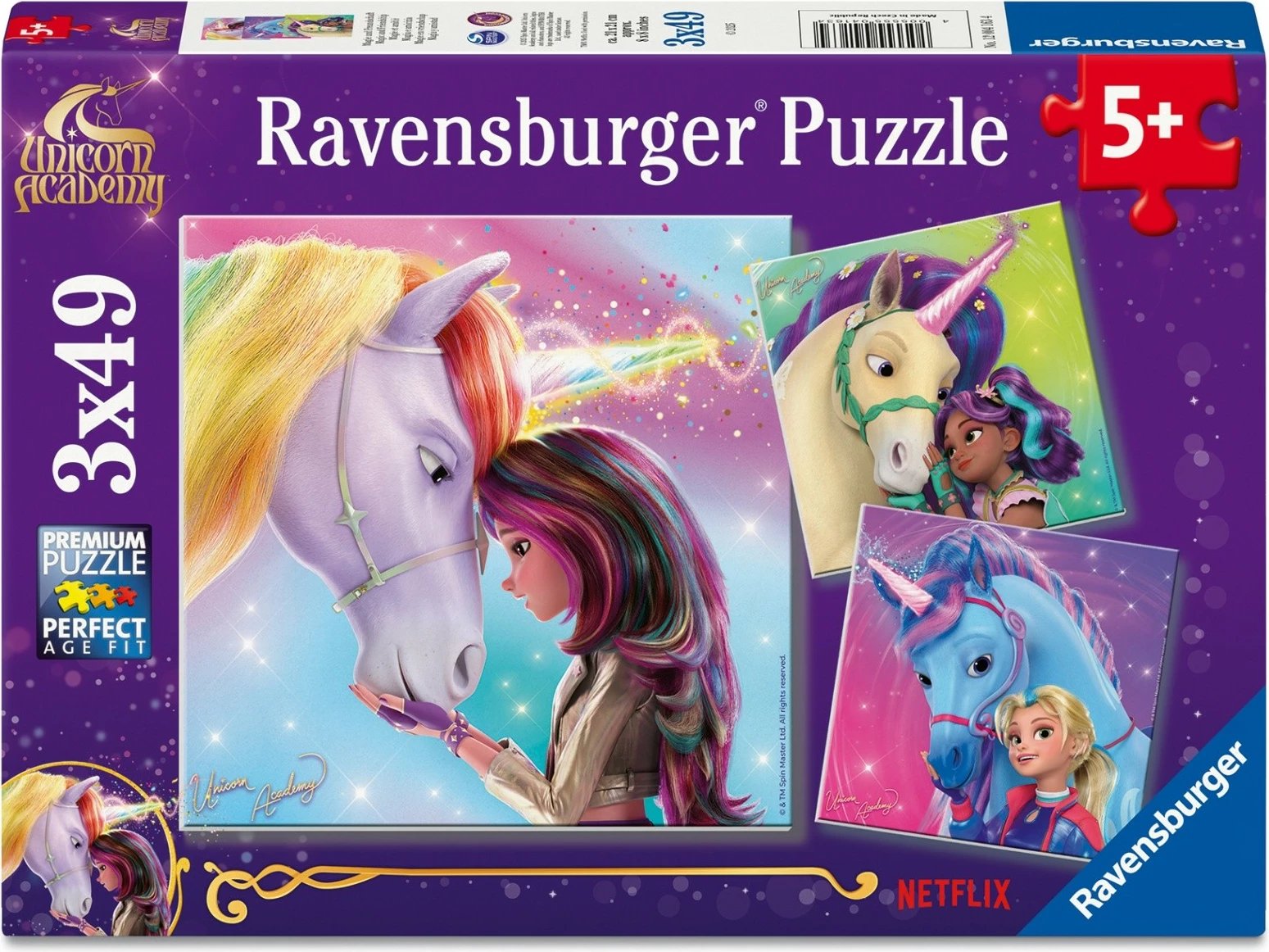 Puzzle për fëmijë Ravensburger Unicorn Academy 3x49 pjesë, shumëngjyrësh, set