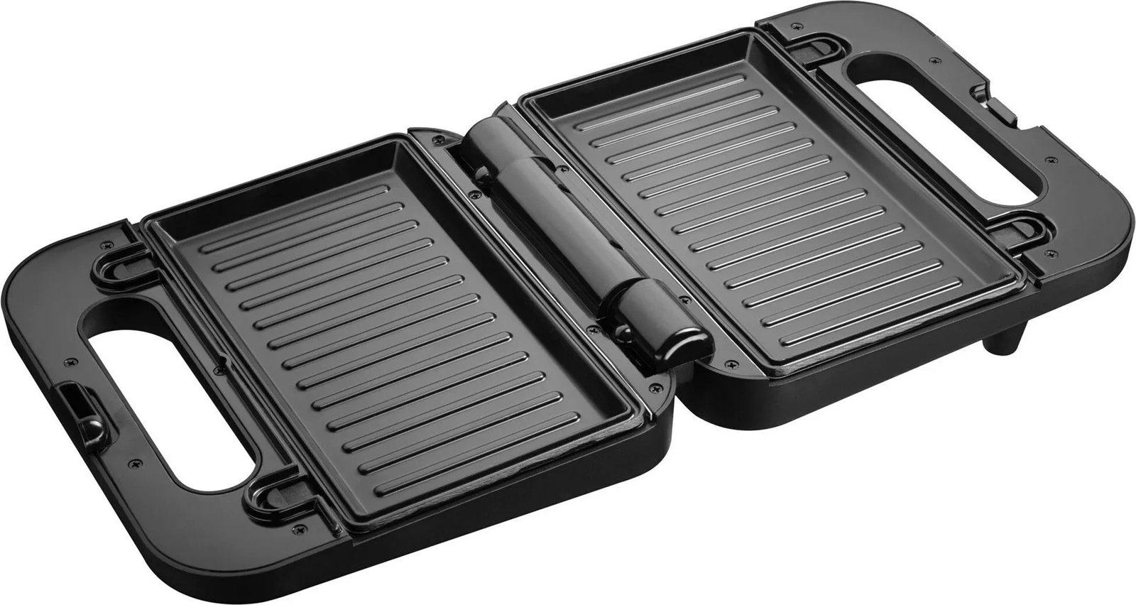 Ky model ofron dy pllaka për grill, dy pllaka për sanduiçe dhe dy pllaka për vafla, duke ju lejuar të përgatisni ushqime të ndryshme me lehtësi. Me një fuqi prej 750 watt, ai siguron ngrohje të shpejtë dhe të barabartë.