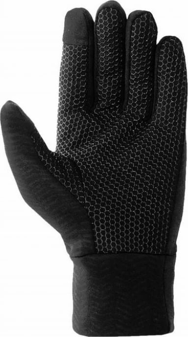Doreza dimërore nga marka 4F në ngjyrë të zezë. Ato kanë funksionin System Touch Screen, i cili gjendet në gishtin tregues dhe gishtin e madh dhe ju lejon të operoni pajisjet mobile pa pasur nevojë të hiqni dorezat.