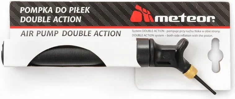 Pompa për top Meteor Double Action është e përshtatshme për fryrjen e topave të ndryshëm të sporteve si futbolli, basketbolli, volejbolli dhe hendbolli. Kjo pompa është e pajisur me një sistem të dyfishtë veprimi që e bën atë të shpejtë dhe të lehtë për përdorim.