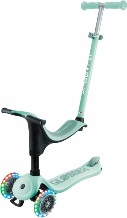 Skuteri GO-UP SPORTY LIGHTS është një mjet shumëfunksional për fëmijët e vegjël, i cili përshtatet me moshën dhe nevojat e tyre. Ky skuter ofron tre mënyra përdorimi: ride-on me udhëzues, biçikletë balancuese dhe skuter. Transformimi midis mënyrave është i thjeshtë dhe mund të bëhet pa vegla.
