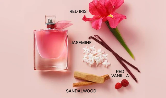 - Zemra e aromës është një përzierje e notave lulesh si irisi, jasemini dhe tuberoza, të kombinuara me nota prej dheu dhe druri të paçulit dhe lajthisë.