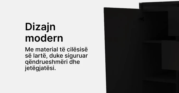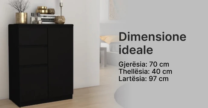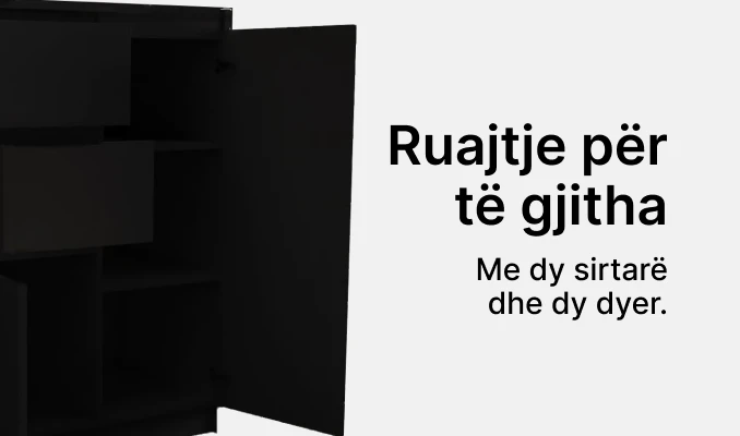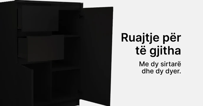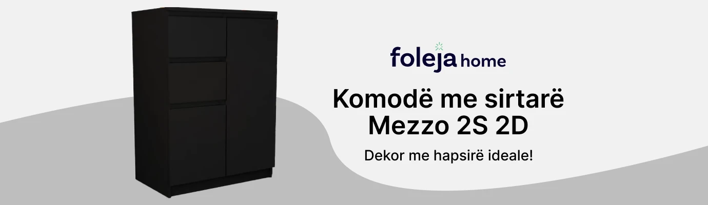 Komoda Mezzo ka dizajn minimalisti, është kompakte dhe kursen hapësirë. Korniza e komodës ka material të cilësisë së lartë, duke siguruar qëndrueshmëri dhe jetëgjatësi. Ka ngjyrë monokromatike e cila mund ti përshtatet çdo stili.Ka material të iverpllakës.