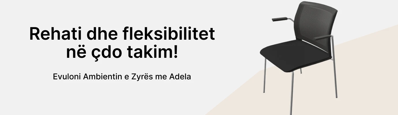 Adela është një gamë e gjerë karrigesh,të rehatshme, të përballueshme dhe shumëfunksionale. Ky dizajn vjen në shumë versione të ndryshme për të përshtatur të gjitha zonat tuaja të takimeve, trajnimeve dhe ngrenies. Tableta opsionale e shkrimit, sistemi i lidhjes dhe karriga për mbledhjen e numrit të madh . Adela gjithashtu është e disponueshme si karrige balkoni.