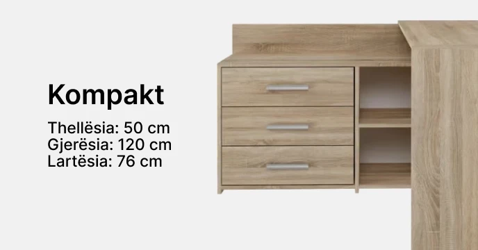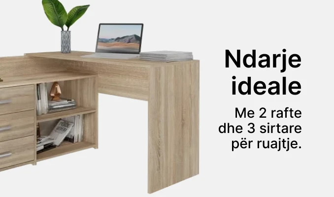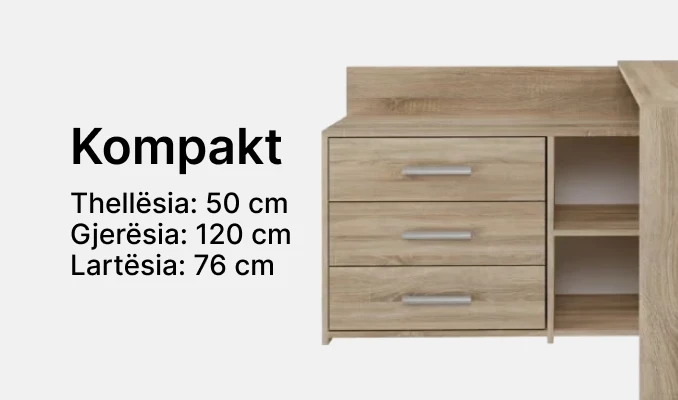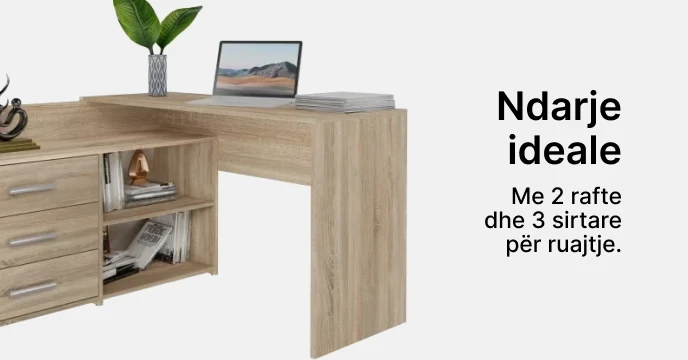 Përmirësoni hapësirën tuaj të punës me tavolinën tonë moderne që ofron tre sirtarë të bollshëm për ruajtjen e gjërave. Ideale për studiot ose dhomat e fëmijëve, kjo tavolinë kombinon funksionalitetin me një dizajn elegant, duke krijuar një mjedis pune të rehatshëm dhe frymëzues. Estetika e thjeshtë dhe moderne, ofron një pamje të pastër dhe bashkëkohore. Përmirësoni eksperiencën tuaj të punës me këtë tavolinë elegante dhe të lehtë për përdorim. Ka material të iverpllakës.