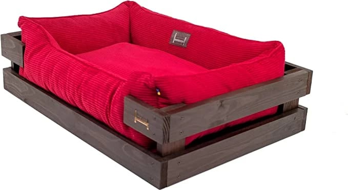 Harley & Cho Shtrati për kafshët "Dreamer Wood" prej druri (L, i kaftë + kadife e kuqe)