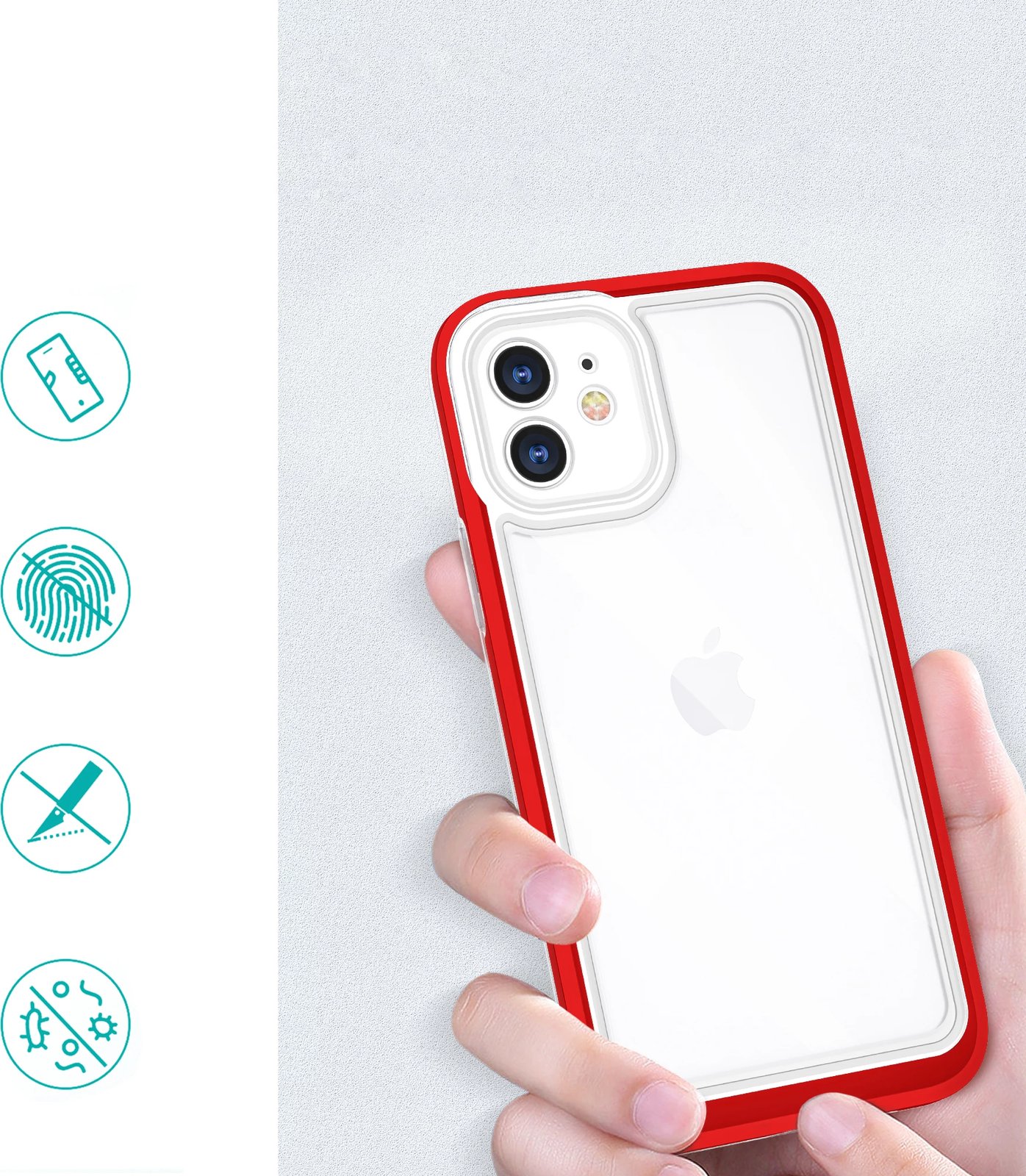 Ky mbështjellës Hybrid Armor Clear 3in1 nga Hurtel është i dizajnuar për iPhone 12 dhe ofron mbrojtje të lartë falë kombinimit të materialeve PC, akrilik dhe TPU. Korniza e kuqe dhe pjesa transparente ruajnë pamjen origjinale të telefonit dhe i japin një stil modern.