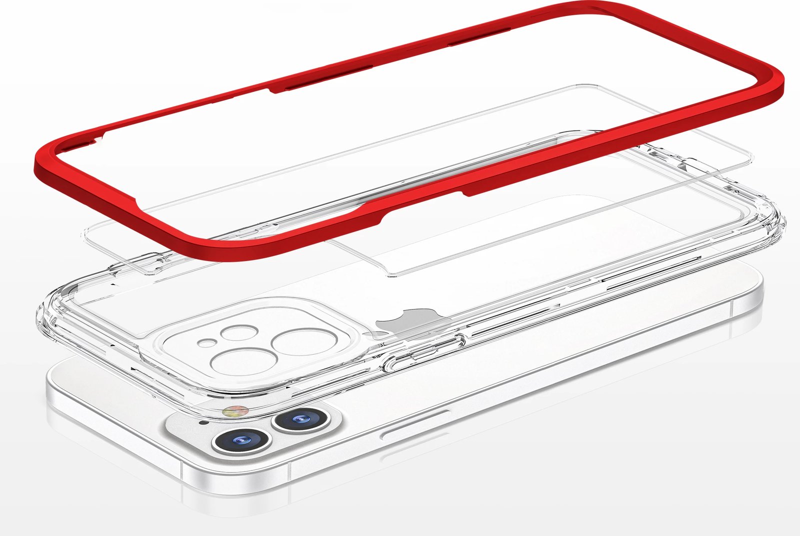 Mbështjellës Hurtel Hybrid Armor Clear 3in1 për iPhone 12, Transparent/Kuqe