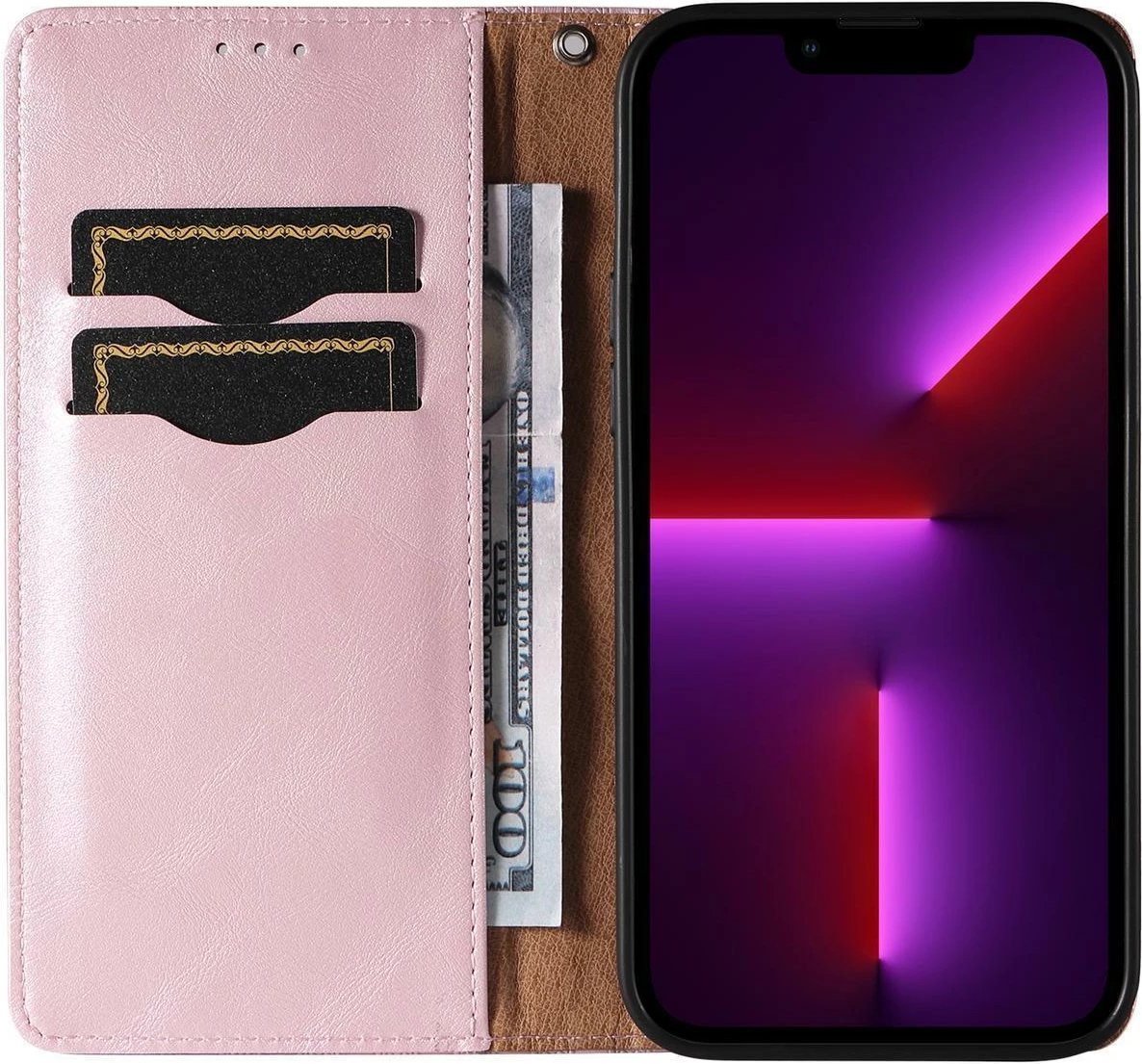 Mbështjellës Hurtel Magnet Strap Case për iPhone 13 Pro Max, me portofol dhe litar dore, Rozë