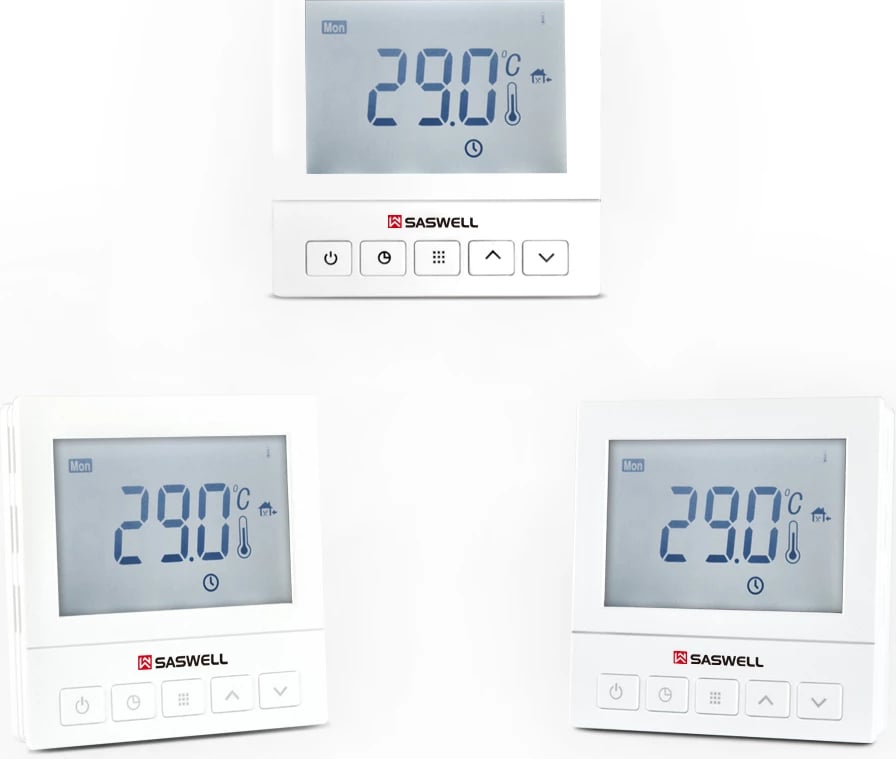 Termostat Smart i programueshëm i dizajnuar për përdorim për ngrohje qendrore elektrike, me gaz dhe me naftë. Termostati mund të kontrollohet me butonat. Termostati ka funksion 7 ditore i cili sipas kohës së caktuar kontrollon temperaturën e dhomës. Instalimi është i lehtë, pjesa kontorlluese montohet në kalda dhe termostati në dhomë i cili është pa tela (WI-FI), termostati mund te ngjitet në muri me ngjitës apo gozhda ose mund te vendoset në mbajtësen e cila është në kuti bashkë me 4 bateri AAA.