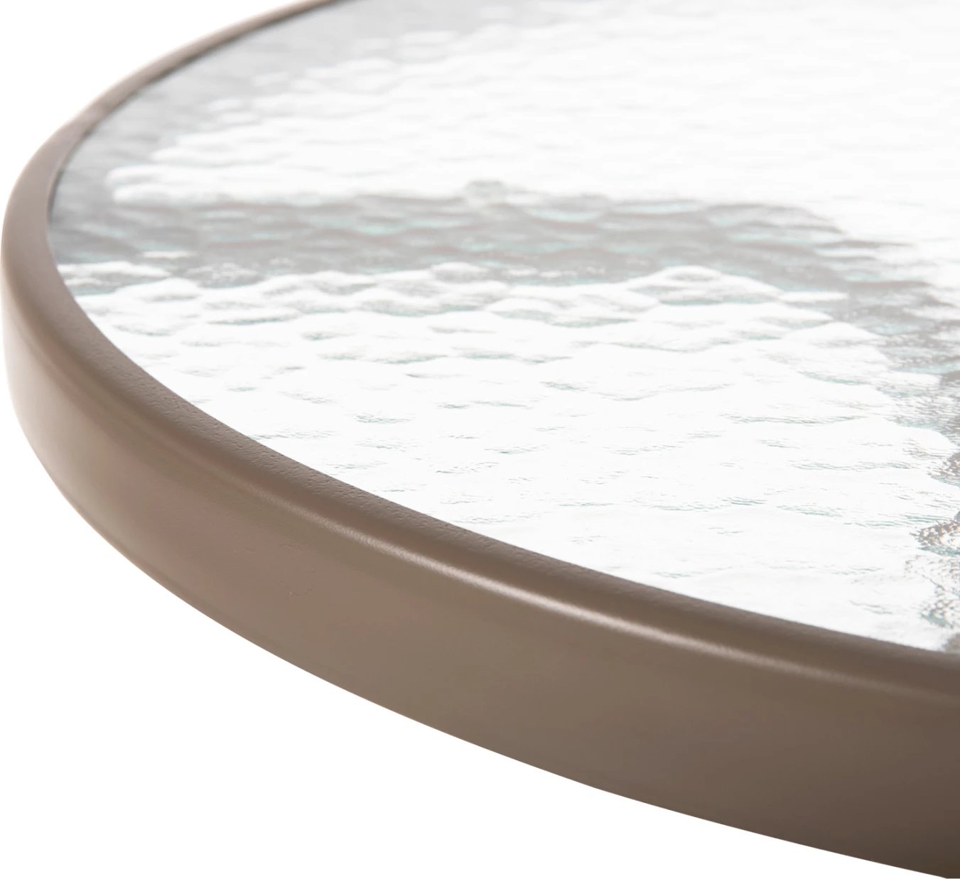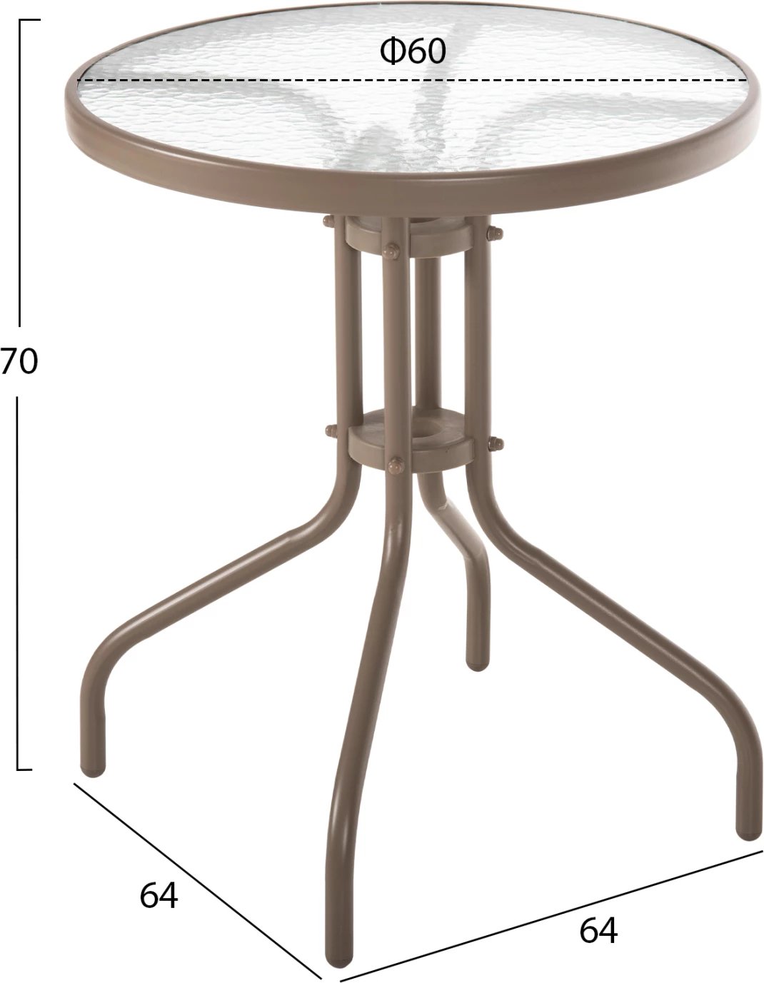 Tavolinë e rrumbullakët për jashtë, ngjyrë shampanjë, FH5079.04, sipërfaqe tavoline prej xhami, Φ60x70H cm