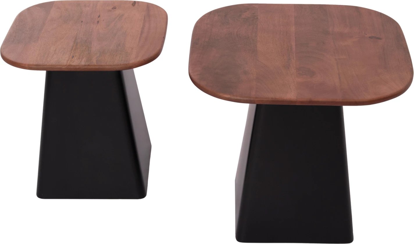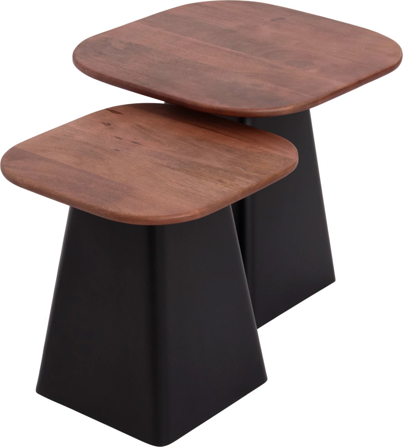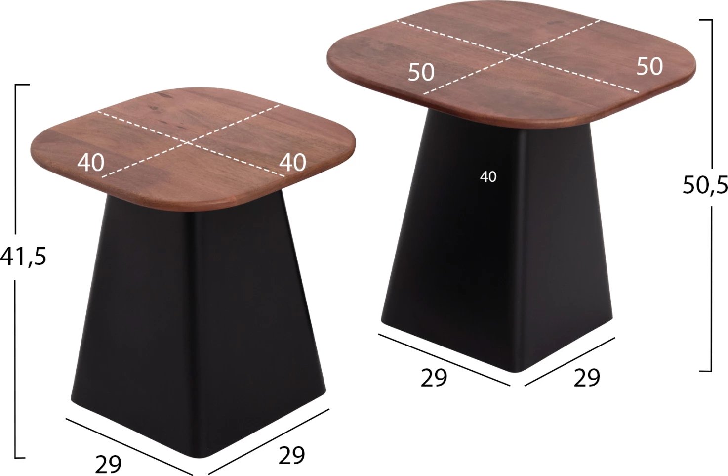 Tavolina kafeje 2 copë VAIOLA FH9998, dru mango, baza metalike të zeza, 40x40 & 50x50 cm.