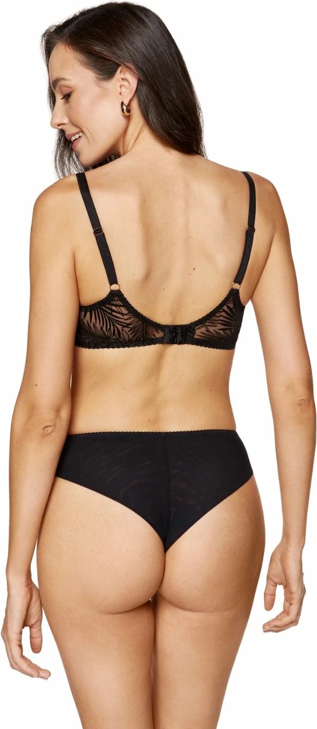 Këto të brendshme braziliane nga Gorteks janë të dizajnuara për të ofruar rehati dhe elegancë. Pjesa e pasme është e bërë nga tulle e dyfishtë, që nuk shfaqet nën rroba, ndërsa materiali i butë me dizajn palme dhe detaj i artë në mes i japin një pamje të veçantë. Bel i lartë ndihmon në zgjatjen vizuale të këmbëve dhe hollimin e siluetës.