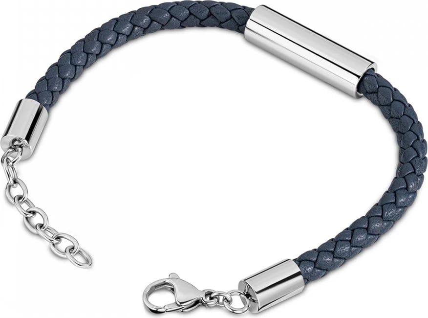 Byzylyku nga TIMBERLAND JEWELS është një aksesor elegant dhe modern, i dizajnuar për meshkuj që vlerësojnë stilin dhe cilësinë. Ky byzylyk është i punuar me rrip të thurur lëkure në ngjyrë të kaltër të errët dhe ka një pllakë metalike me logon dhe emrin Timberland të gdhendur. Mbyllja është praktike dhe e sigurt, duke e bërë të përshtatshëm për përdorim të përditshëm ose për raste të veçanta.