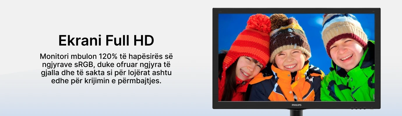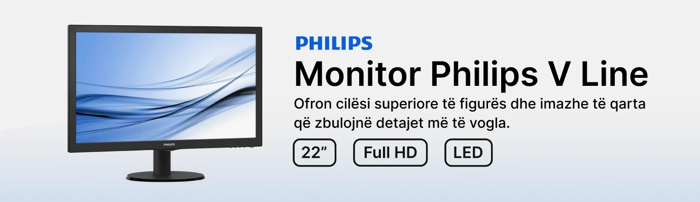 Monitori LCD Philips V Line me SmartControl Lite 223V5LSB2/10 është një monitor me cilësi të lartë që ofron një sërë veçorish për të përmirësuar përvojën tuaj të shikimit. Me një rezolucion ekrani prej 1920 x 1080 piksele dhe një diagonale të ekranit prej 22", ky monitor ofron imazhe të qarta dhe të mprehta Teknologjia e ndriçimit të pasëm LED siguron ngjyra të gjalla dhe kontrast të mprehtë. Ky monitor ofron gjithashtu një teknologji pa dridhje, e cila redukton tendosjen e syve dhe ofron një përvojë të rehatshme shikimi. Për më tepër, ai ka një kohë përgjigjeje prej 5 ms, duke siguruar lëvizje të qetë dhe të rrjedhshme në skenat me ritme të shpejta. Monitori është gjithashtu i pajisur me një kënd të gjerë shikimi prej 90° horizontale dhe 65° vertikale, duke ju lejuar të shijoni të njëjtin imazh me cilësi të lartë nga kënde të ndryshme.