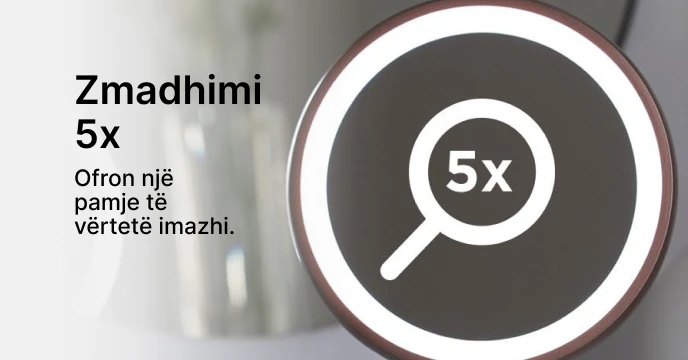 Pasqyra me dy anë që ofrojnë një pamje të vërtetë imazhi së bashku me zmadhim 5x.