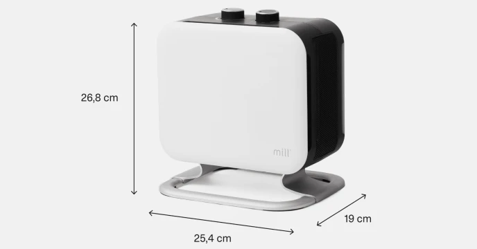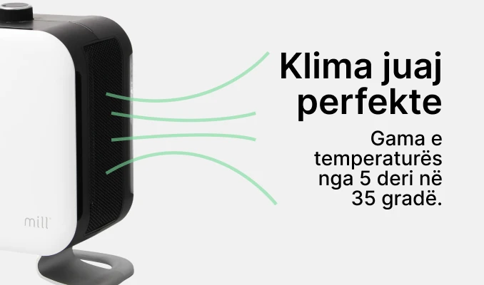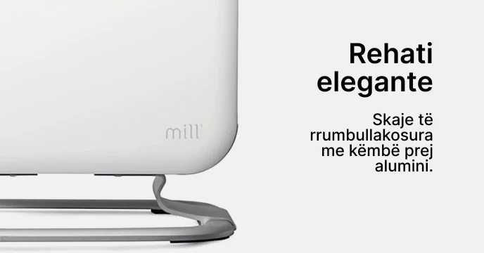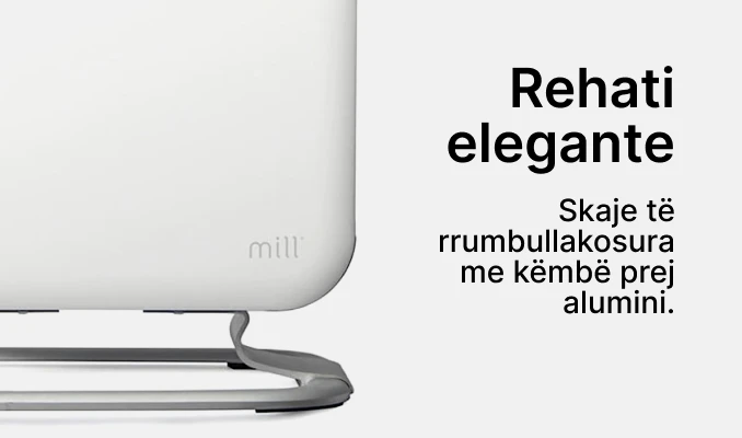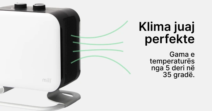 Ngrohësi me ventilator Mill PTC CUS1800MEC është shtesa më e re në familjen tonë të Mill. Ky ngrohës mulli super elegant ka skaje të bukura të rrumbullakosura, dhe një këmbë elegante prej alumini që e bën ngrohësin të duket sikur rri pezull mbi dysheme. Thjesht mahnitëse!