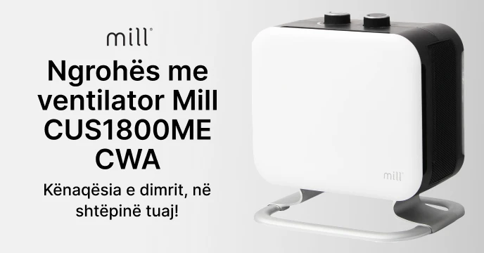 Mill CUS1800MECWA do t'i japë ngrohje të shpejtë shtëpisë tuaj. Ngrohësi ka një efekt total prej 1800W dhe me dy cilësime të nxehtësisë: 1200/1800W.