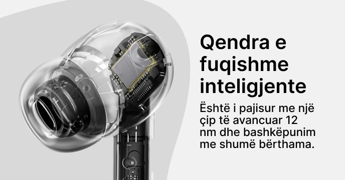 Me një bateri të integruar, kjo kufje funksionon me bateri dhe mund të karikohet lehtësisht duke përdorur kutinë ose mbajtësen e karikimit USB-C të përfshirë. Kufjet përdorin versionin 5.3 Bluetooth për lidhje të qetë dhe të besueshme. Lloji i kontrollit është me prekje, duke lejuar funksionimin e lehtë dhe intuitiv. Kufjet gjithashtu kanë anulim aktiv të zhurmës, duke siguruar audio të qartë dhe të pandërprerë.