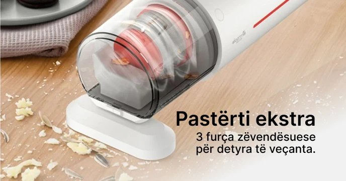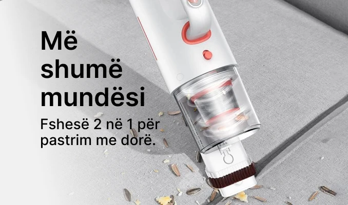 Deerma CM1300 është në fakt 2 pajisje në 1! Mund të përdoret si një fshesë me korrent e përshtatshme për pastrim me dorë.