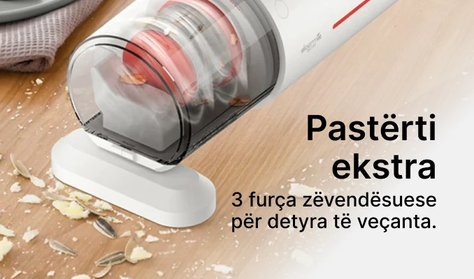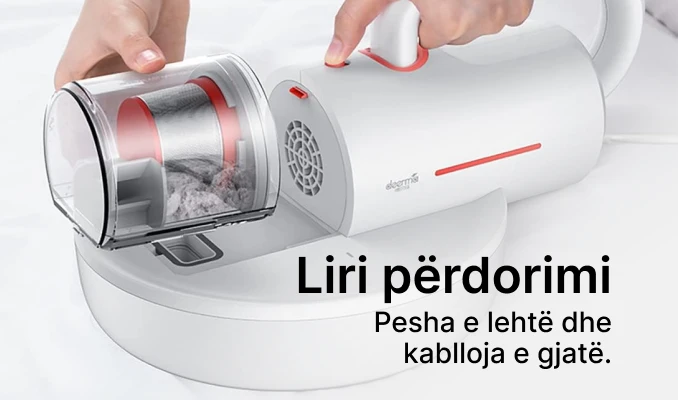 Fshesa me korrent Deerma përballet mirë me pluhurin dhe marimangat, duke ju lejuar të krijoni një mjedis të pastër dhe të shëndetshëm në shtëpinë tuaj. Shpejtësia prej 8000 goditjesh në minutë dhe drita efektive UV e bëjnë të lehtë heqjen e alergeneve. Pesha e lehtë dhe kablloja e gjatë sigurojnë liri dhe komoditet të jashtëzakonshëm përdorimi.