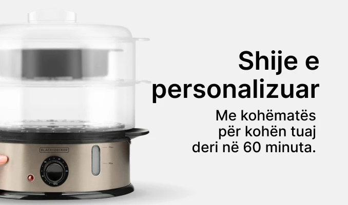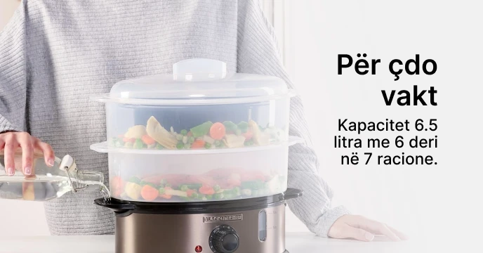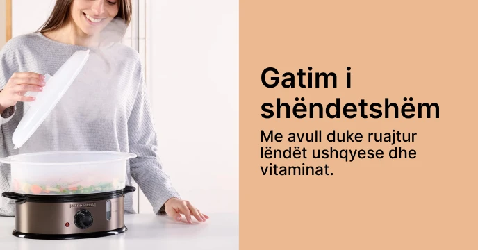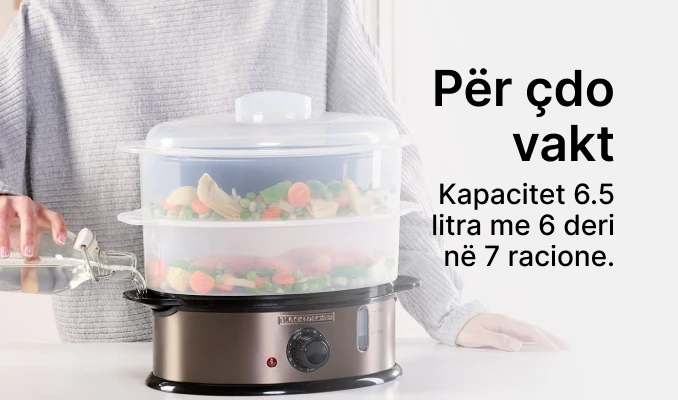 - Gatim i personalizueshëm: Kohëmatësi i integruar ju lejon të vendosni kohën tuaj të dëshiruar të gatimit deri në 60 minuta. Ju keni kontroll të plotë mbi procesin e gatimit dhe avulli do t'ju njoftojë kur ushqimi të jetë gati, duke siguruar gatim të përsosur çdo herë.