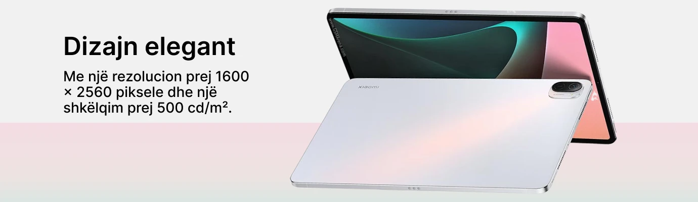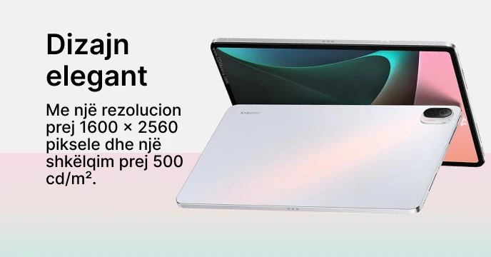 Xiaomi pad 5 është një tablet me madhësi të plotë me një dizajn elegant dhe me ngjyrë të bardhë. Ka një diagonale të ekranit 27,9 cm (11") me një rezolucion prej 1600 x 2560 piksele dhe një shkëlqim prej 500 cd/m². Ky tablet është i pajisur me një procesor Qualcomm Snapdragon 860 me 4 bërthama dhe një frekuencë prej 2.96 GHz.