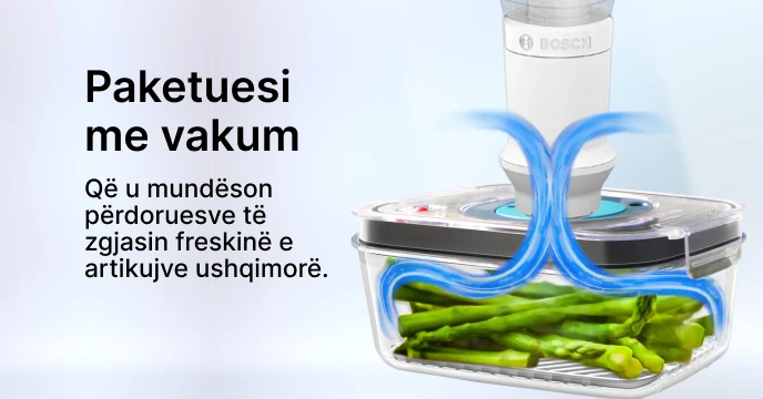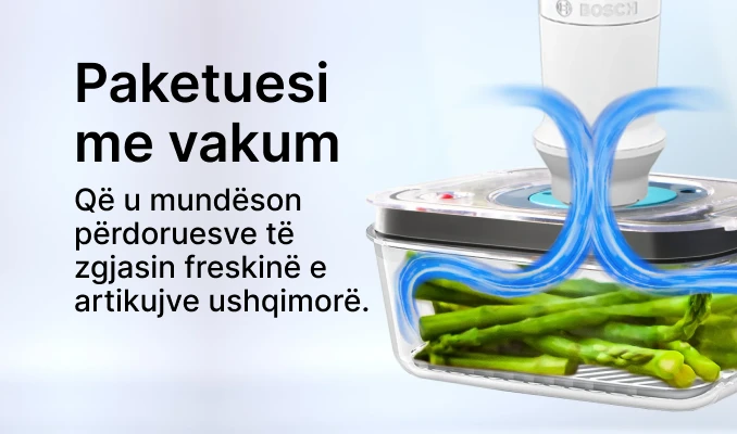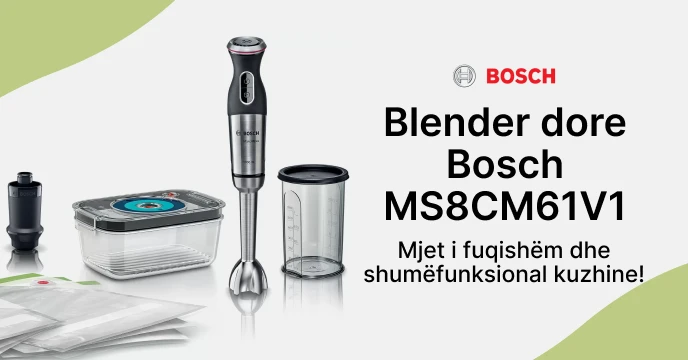 - Shumëfunksionale: Përveç përzierjes, Bosch MaxoMixx MS8CM61V1 vjen me një paketues vakum dhe pajisje të ndryshme, duke zgjeruar funksionalitetin e tij në detyra të tilla si mbyllja me vakum dhe përgatitje të tjera kuzhine.