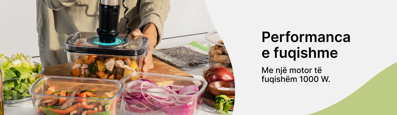 - Paketuesi me vakum: Paketuesi me vakum i përfshirë është një veçori e dukshme, që u mundëson përdoruesve të zgjasin freskinë e artikujve ushqimorë duke hequr ajrin dhe duke i mbyllur ato në vakum.