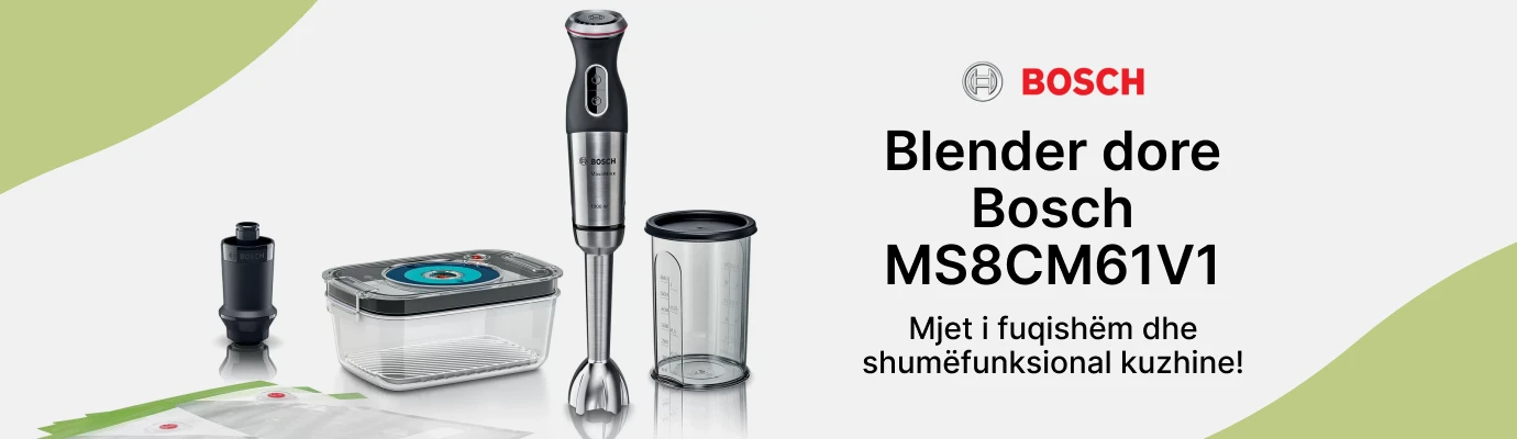 Bosch MaxoMixx MS8CM61V1 është një blender dore i gjithanshëm që vjen me një paketues vakum dhe pajisje të ndryshme, duke e bërë atë një mjet të fuqishëm dhe shumëfunksional kuzhine.