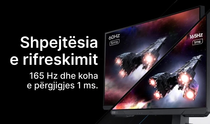 · Një ritëm i shpejtë i rifreskimit 165 Hz siguron lëvizje të qetë në lojëra.