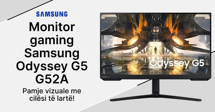 Monitori i lojrave Odyssey G5 G52A jep pamje vizuale me cilësi të lartë me rezolucion QHD, mbështetje HDR dhe një ritëm të shpejtë rifreskimi. Karakteristikat e tij të përqendruara te lojërat, duke përfshirë vonesën e ulët të hyrjes dhe pajtueshmërinë me G-Sync, kontribuojnë në një përvojë të qetë dhe gjithëpërfshirëse të lojërave. Dizajni ergonomik siguron rehati gjatë seancave të gjata të lojërave.